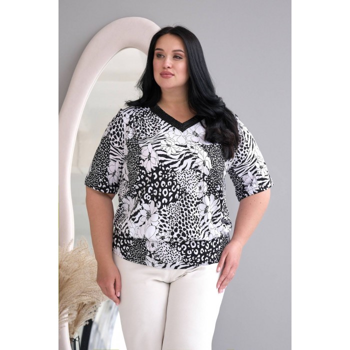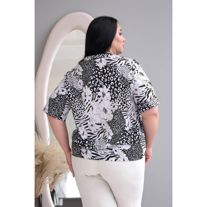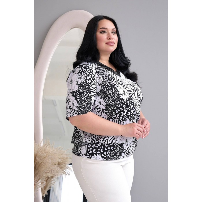 Блуза з декором СТІВ чорно-біла (квіти) UA25B17