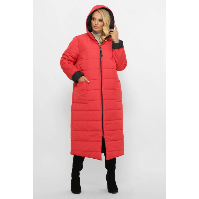 Двостороннє стьобане пальто Полі коралове UA25P4